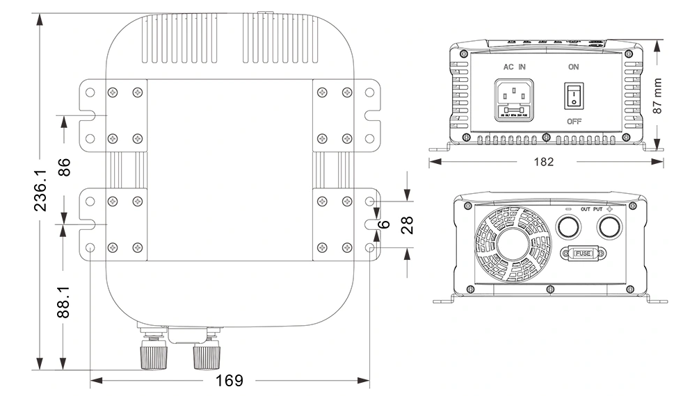 Механічні креслення: (236,1×182×87 мм)