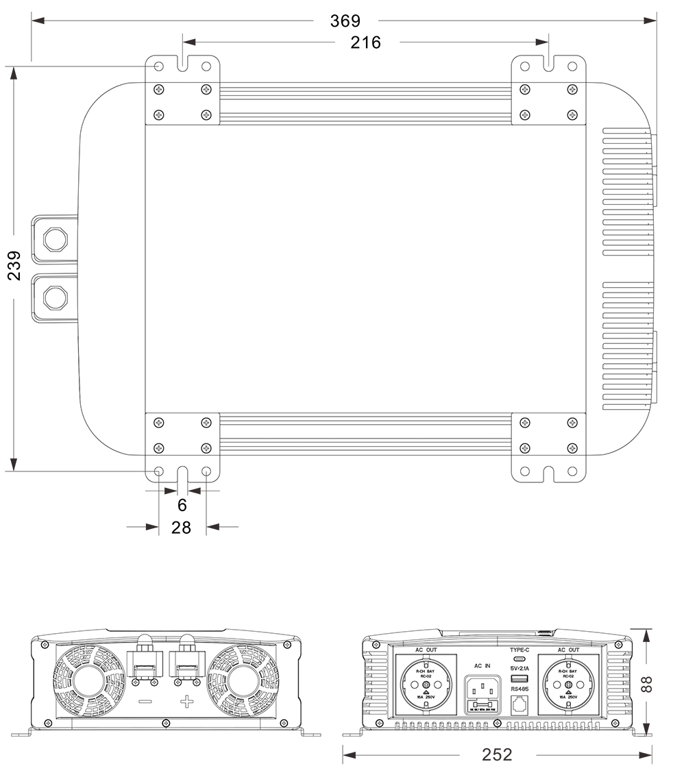 Механічні креслення: (369x252x88 мм мм)