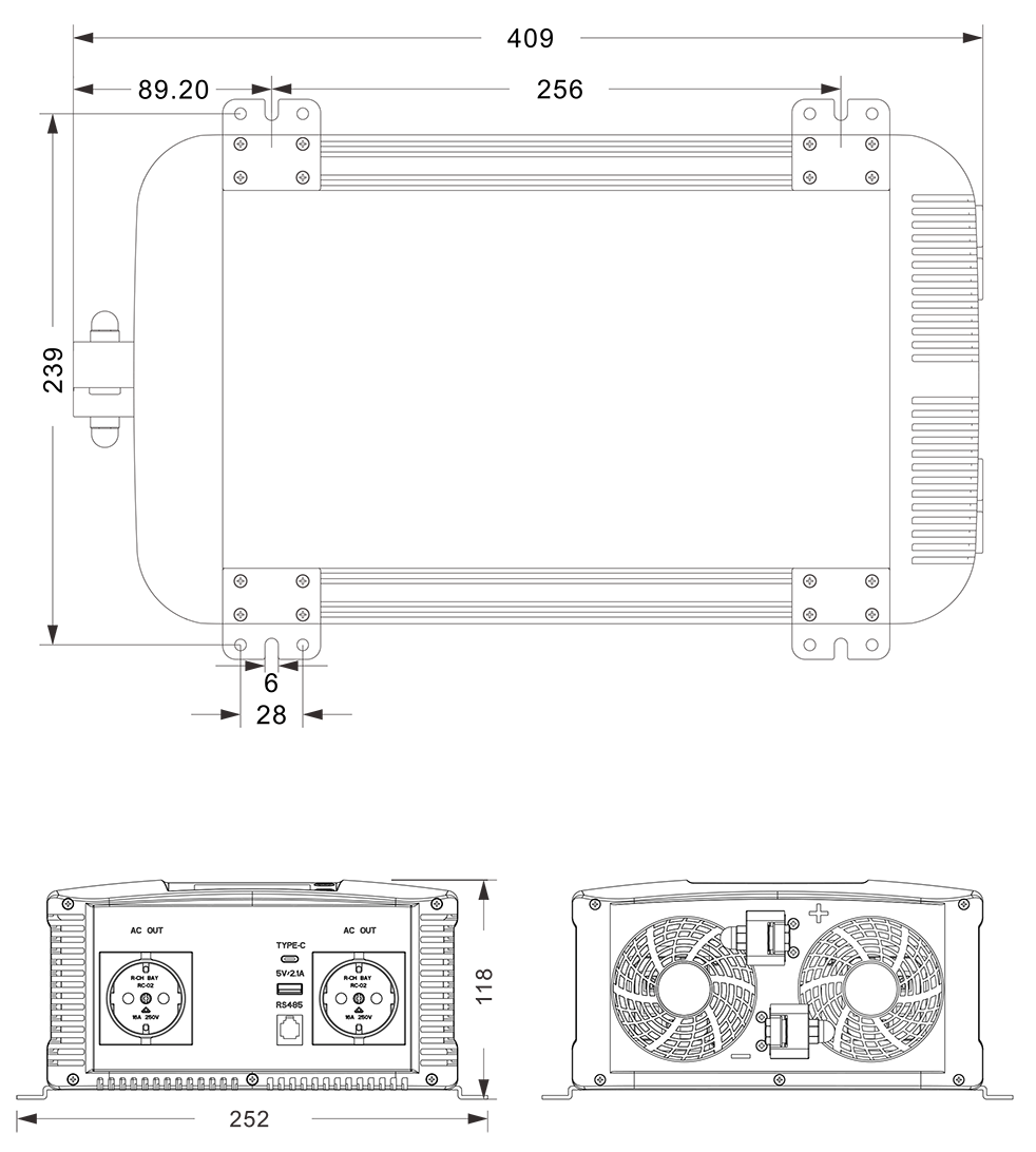 Механічні креслення: (409x252x118 мм)