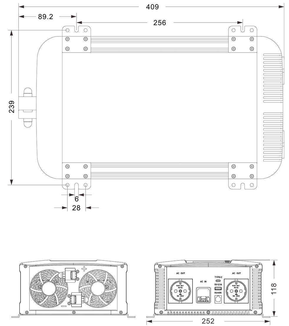 Механічні креслення: (409x252x118 мм)